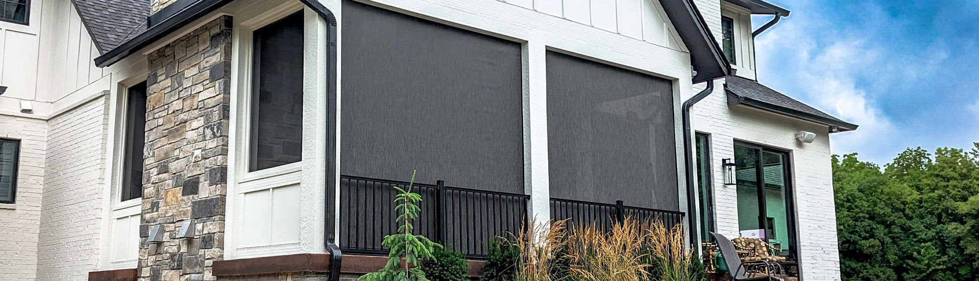 Enhance your patio or porch into a versatile, year-round oasis with our sophisticated motorized screens and clear vinyl panels.